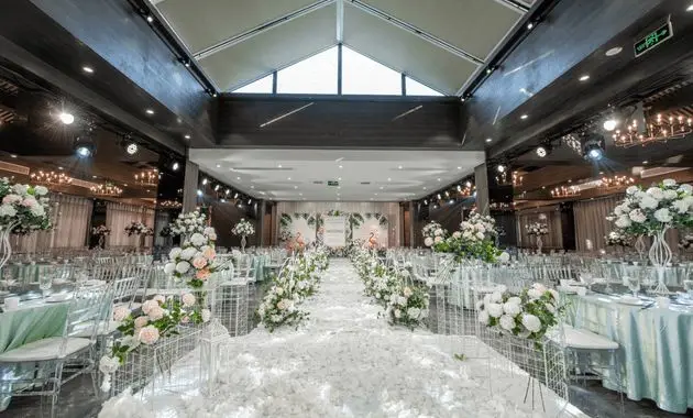 阳光从玻璃天窗的屋顶洒下,温暖如初,就像新娘的笑容,动人心弦。婚礼布置不受约束,舞台、背景、T台可以DIY随意布置,总能打造一场完美的婚礼。