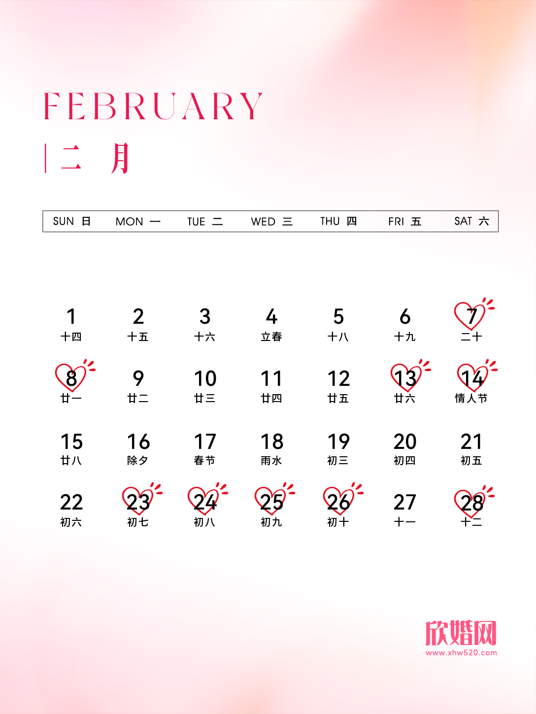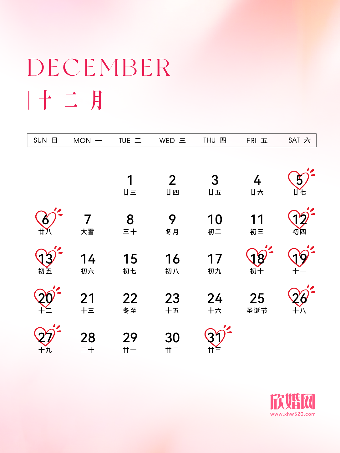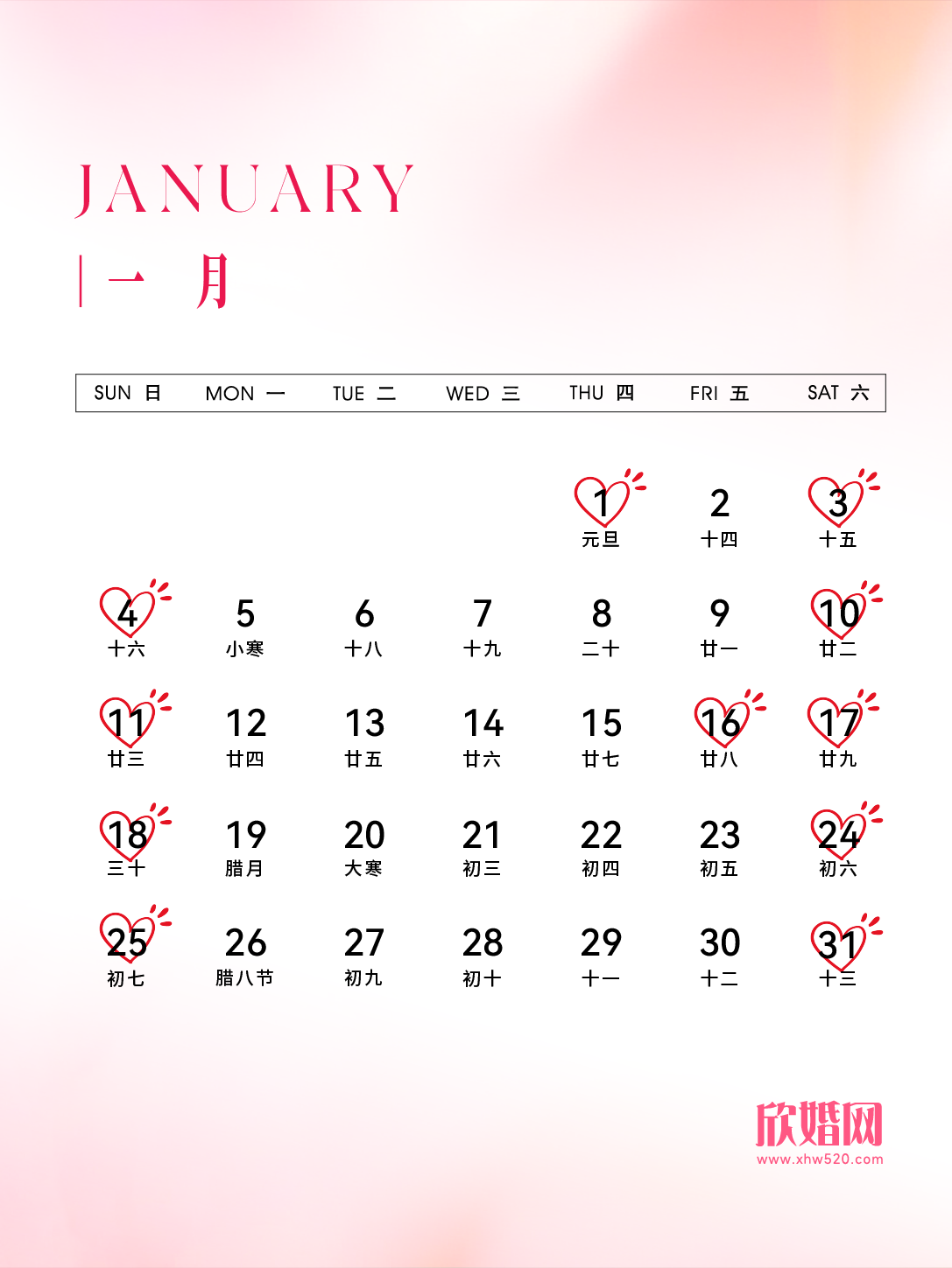 小欣为新人们制作了2026年宜嫁娶日历!每个日子都承载着满满祝福~