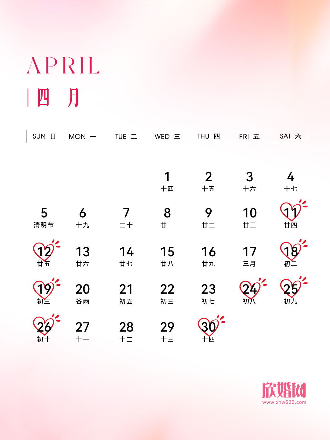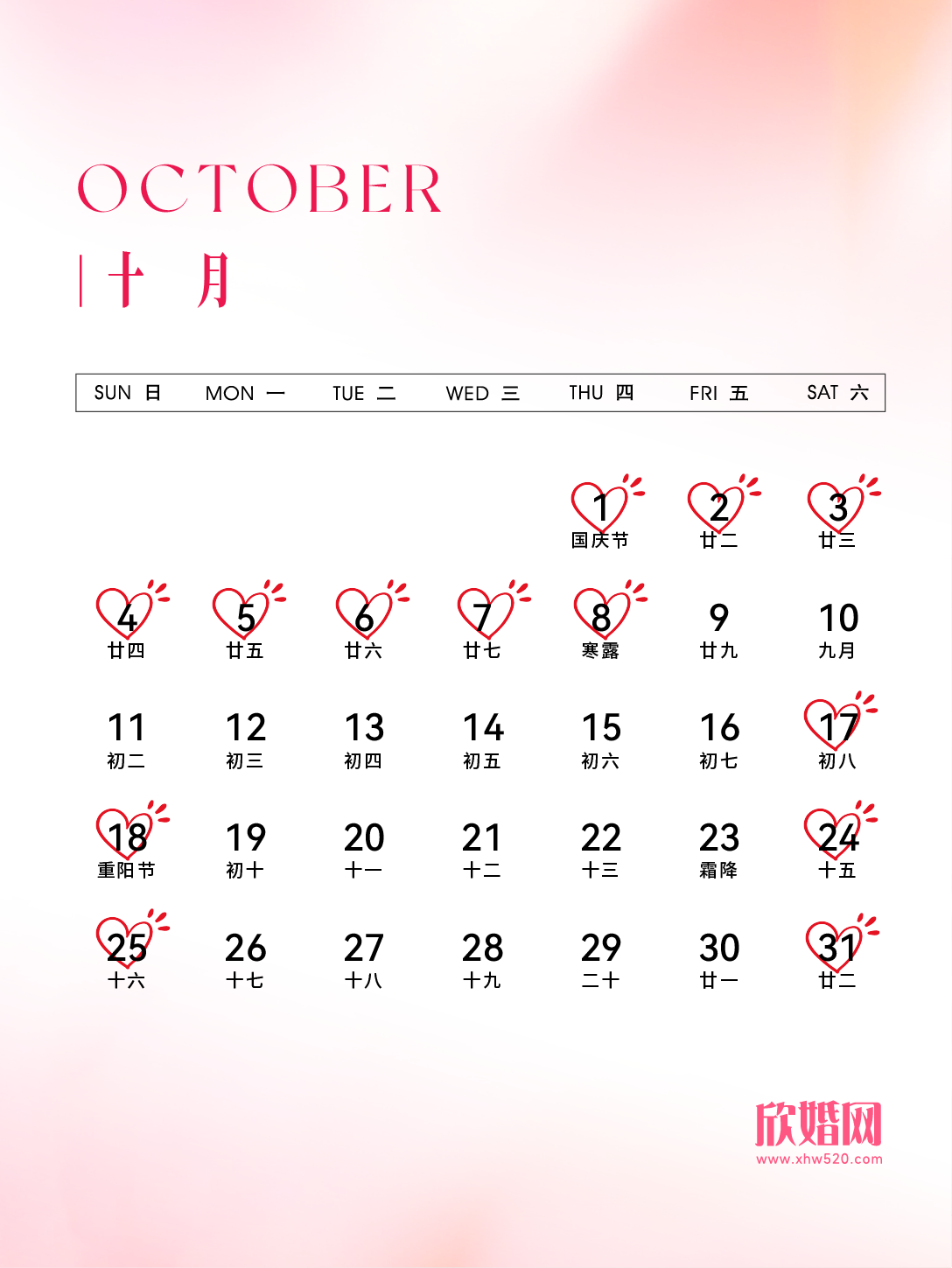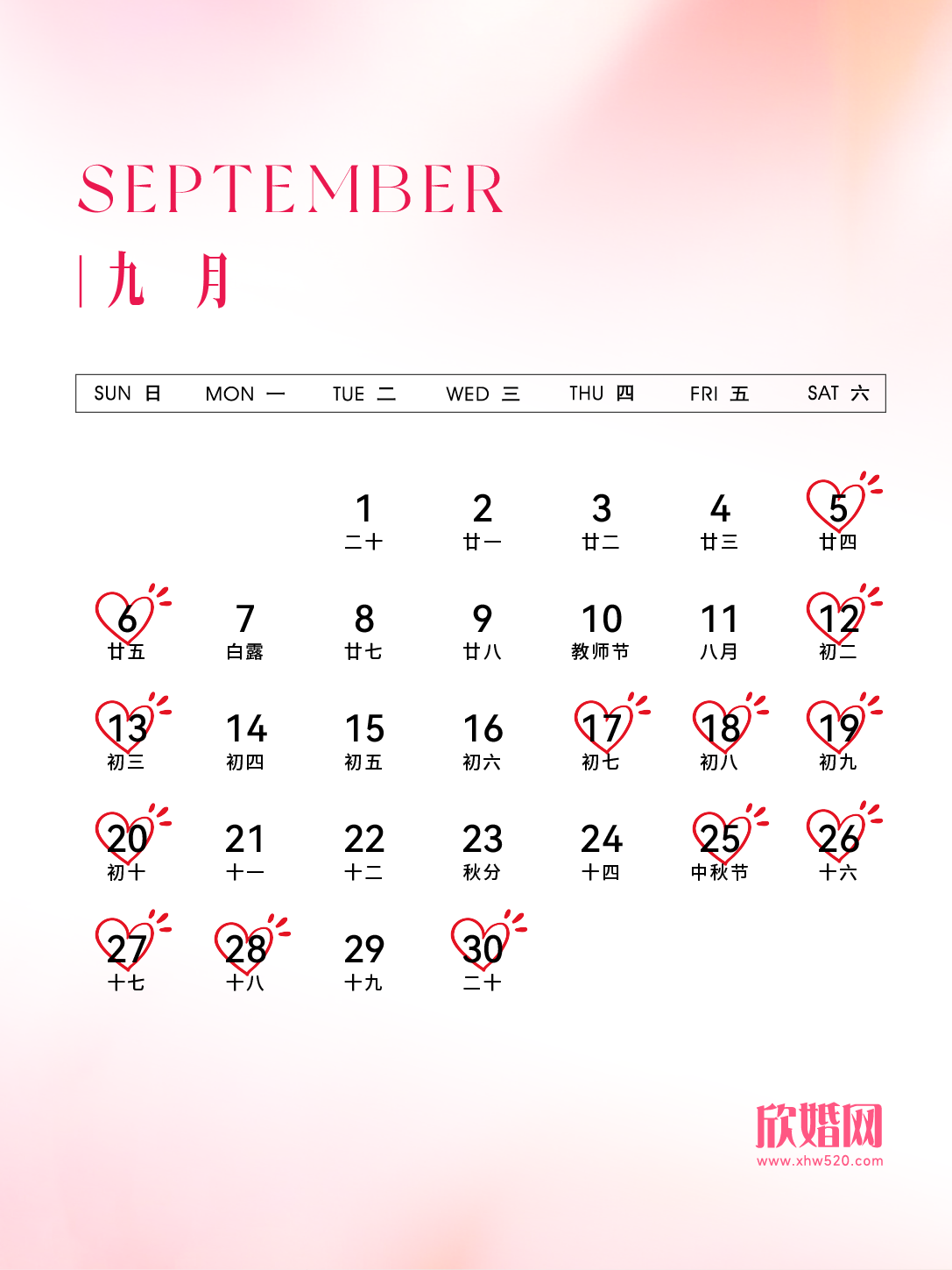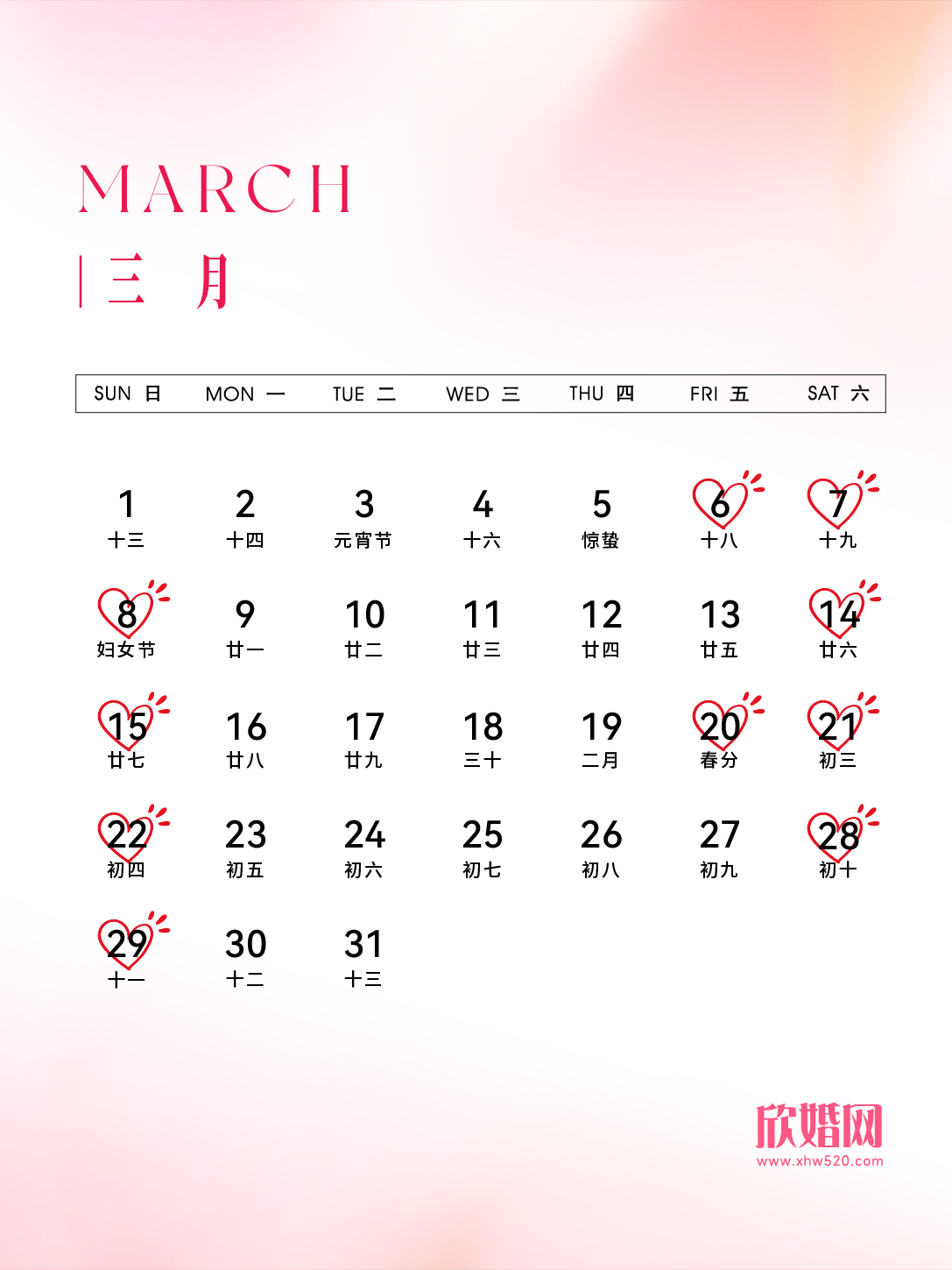 小欣为新人们制作了2026年宜嫁娶日历!每个日子都承载着满满祝福~